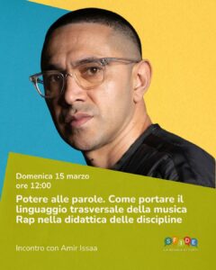 Amir Issaa, rapper e autore impegnato da anni nelle scuole e nelle università, lavora sul confine tra educazione e cultura hip hop.